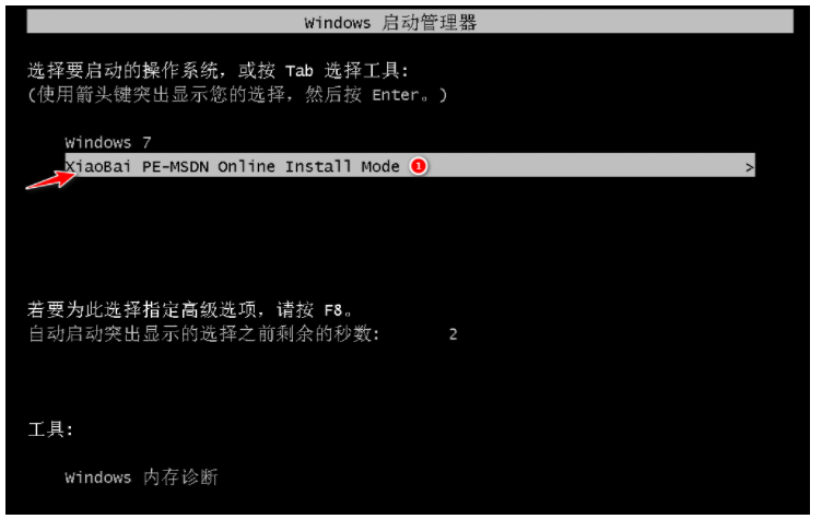 5、重启电脑后在 PE 菜单中选择 XiaoBai PE-MSDN Online Install Mode 菜单进入 Windows PE 系统桌面。