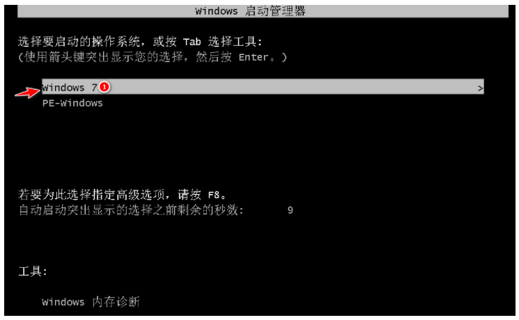 7、重启电脑后选择 Windows 7 菜单进入。