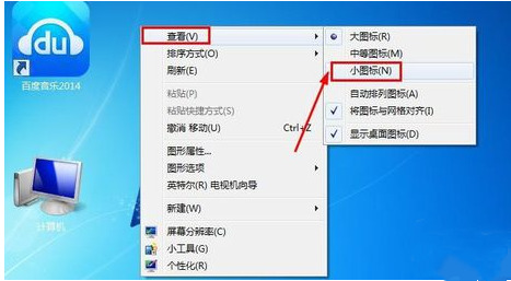 2.点击“小图标”,桌面图标即可成功变小。