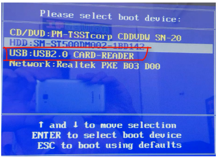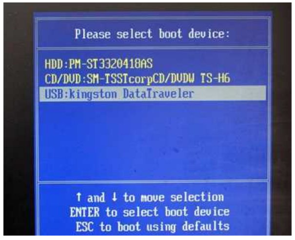 6、开启之后按快捷键进入PE系统,选择usb项回车。