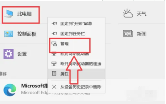 右键点击我的电脑图标,在下拉窗口中点击管理选项。