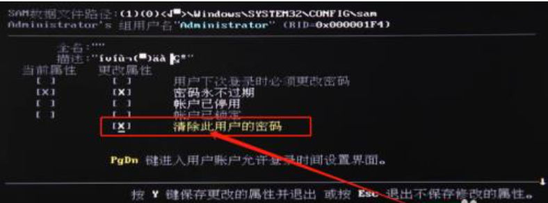 9、到这一步,我们直接在图中标记的地方输入“X”和“Y”确认清除密码。