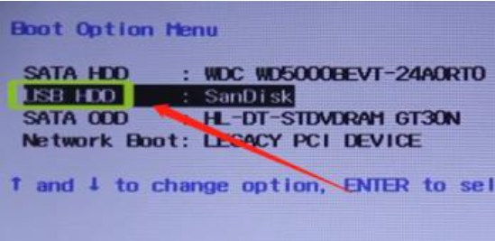 5、进去之后,我们选择“USB HDD”如图标记的。