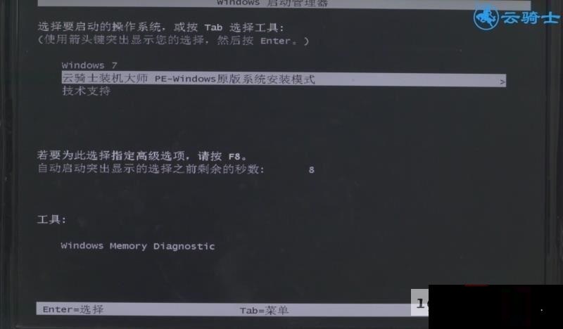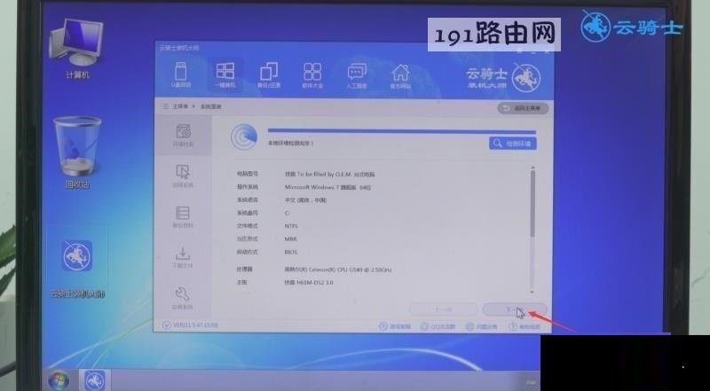 第六步进入云骑士装机大师PE系统安装模式,稍等一会,进入PE系统安装界面