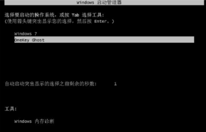 5.电脑重启之后此时将会进入到启动管理页面,鼠标点击onekey ghost进入安装界面。