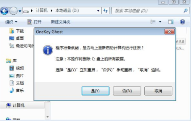 4.当弹出窗口界面提示我们是否删除数据时,点击“是”进入重启电脑的操作。