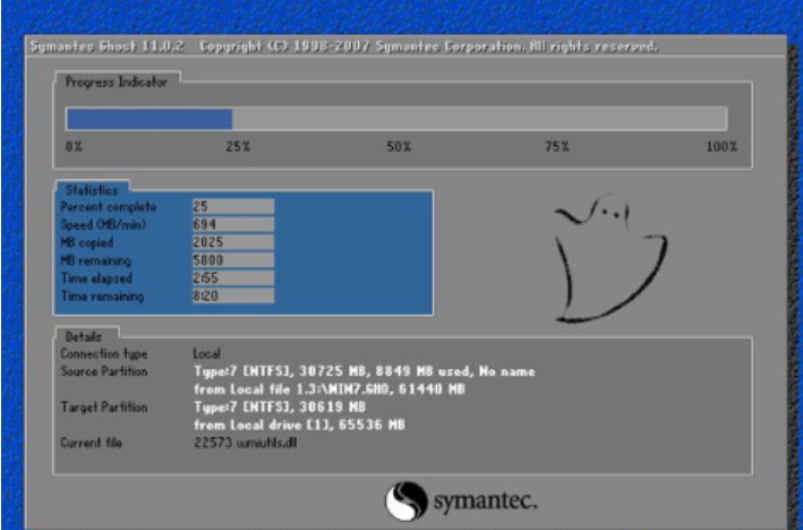 3.点击onekey ghost进入安装,等待进度条加载完成;