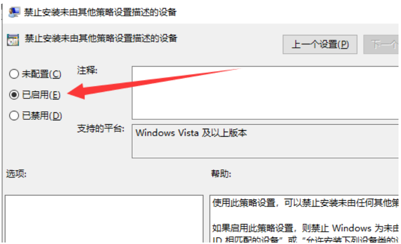 5、在窗口中将"已启用"勾选上即可。如果想要更新其他驱动的话则需要勾选"已禁用"选项。