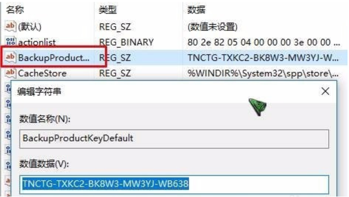 6、在右侧双击打开:BackupProductKeyDefault,其数值数据就是我们当前Win10激活密钥了。