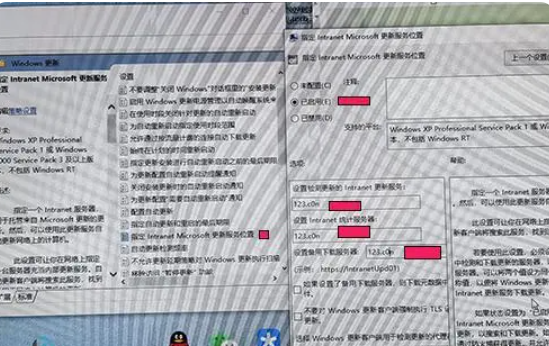 6、双击指定Intranet Micrsoft更新服务位置,选择已启用,选项下面服务器填写任意网站地址,这一步需要重启电脑。