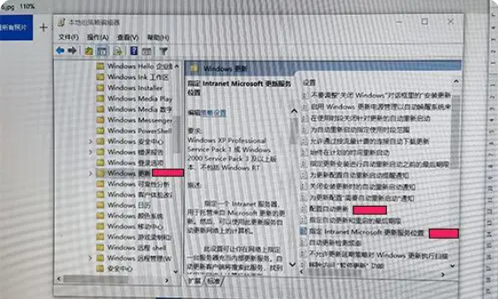 4、依次,从Windows组件找到Windows更新,右侧找到配置自动更新 和 指定Intranet Micrsoft更新服务位置。