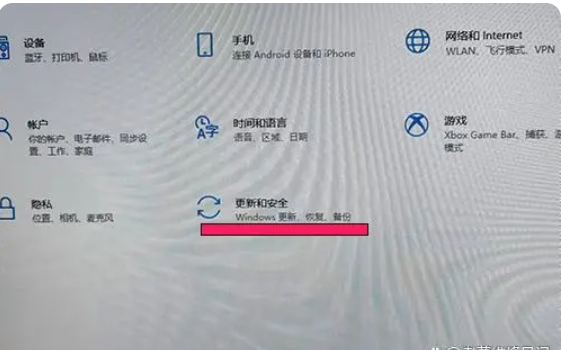 1、开始,设置,更新和安全。