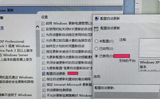 5、双击配置自动更新,选择已禁用。