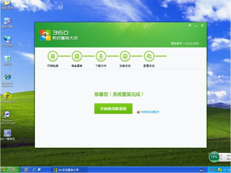 8、驱动安装完成后,会提示系统重装完成,可以正常使用啦。整个过程很简单,全程不需要操作几个步骤。