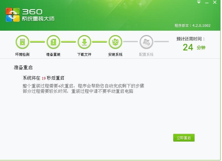 7、系统重装完毕以后,点击立即重启,进入重装驱动界面。