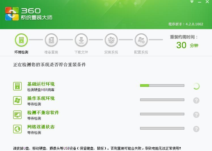 3、接着软件自动进入系统环境检测阶段,根据结果可以判断电脑是否能够满足重装系统的环境。