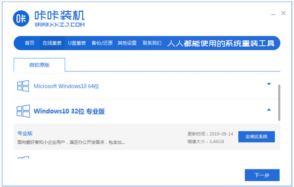 方法二:借助咔咔装机一键重装工具在线重装系统win10