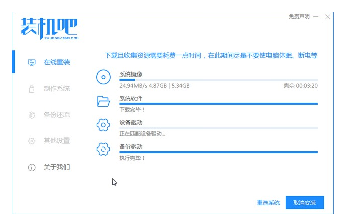 5、在电脑的pe界面中打开装机吧工具然后后继续进行系统的安装。