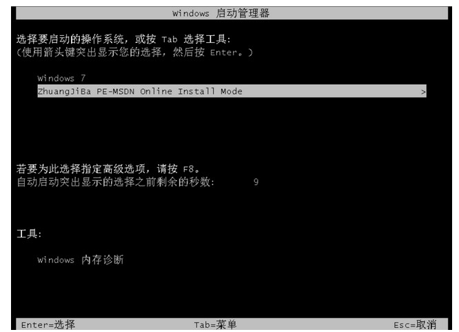 4、重启电脑后会出现windows启动管理器界面,我们选择第二个进入电脑的pe安装系统。
