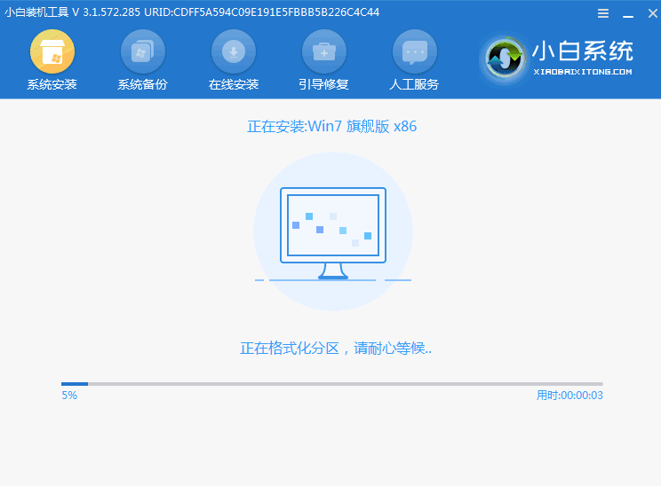 6、在 PE 系统中小白装机工具就会帮助我们进行安装系统,只需要根据提示操作即可。