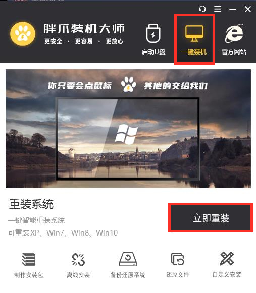 3.点击上方一键装机,选择下面的立即重装;