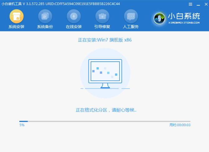6、在 PE 系统中小白装机工具就会帮助我们进行安装系统,只需要根据提示操作即可。