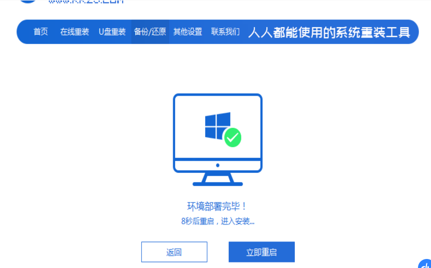 4、部署还原完成后,重启电脑。