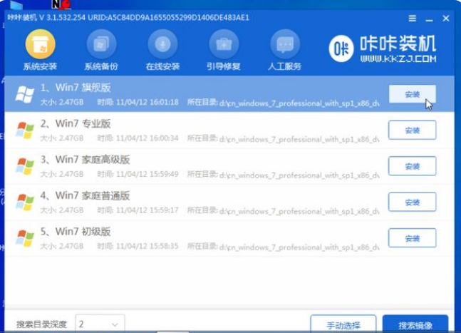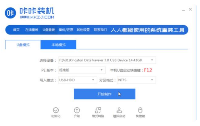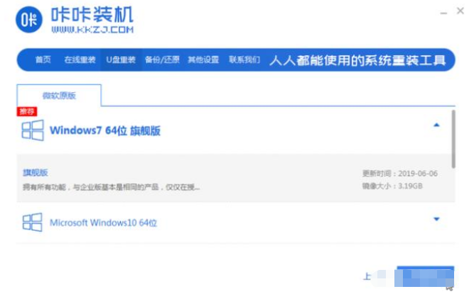 1.如何安装深度win7系统呢?首先在电脑下载并打开咔咔装机软件,选择U盘重装系统。