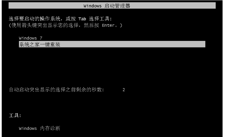 5.点击立刻重启后,电脑自动重启进入启动项选择菜单。默认选择系统之家一键还原,您无需操作只需慢慢等待即可。