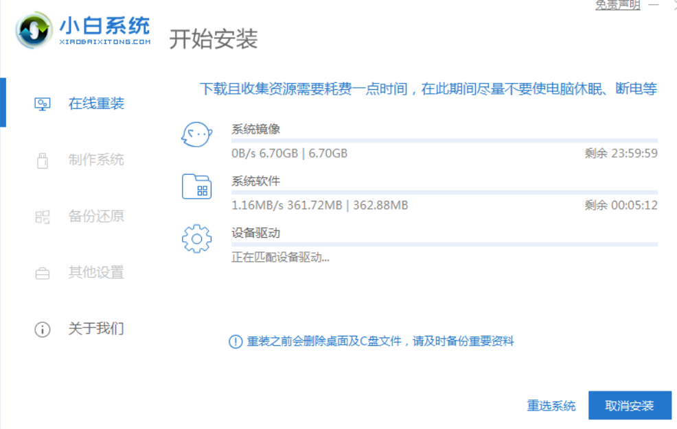 2、等待软件自动开始下载win7旗舰版系统镜像文件资料等,无需操作。