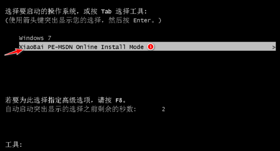 4、重启后进入了开机选项界面,选择xiaobai-pe系统进入。