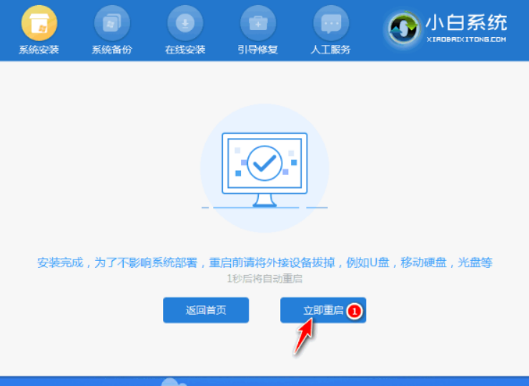 3、部署完成后,选择重启电脑。
