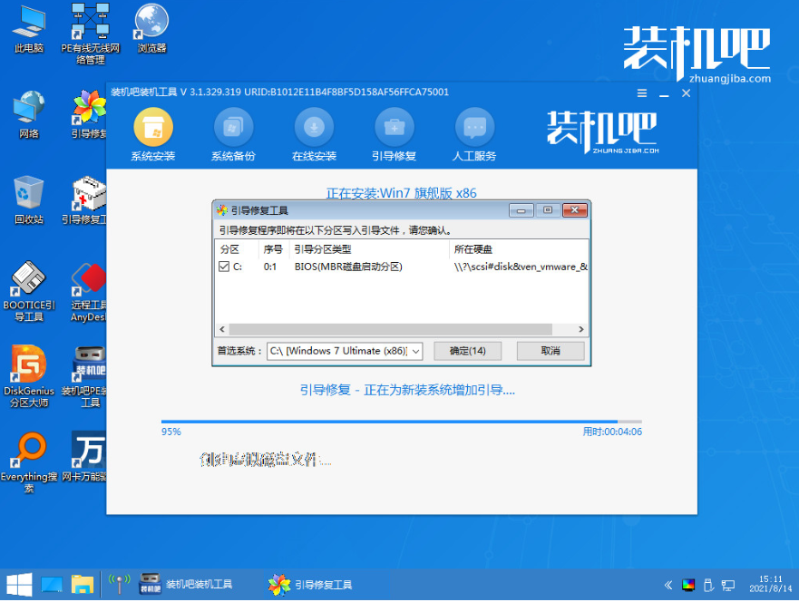 6、在电脑的pe界面中打开装机吧工具然后后继续进行系统的安装。