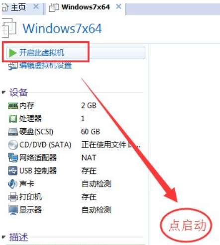 5.回到VMware主界面,选择启动开始。