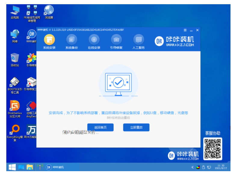 4、等待软件便自动部署还原,完成后点击立即重启。