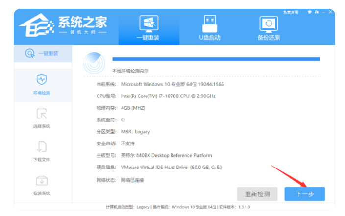 1、瞎子啊并安装系统之家装机大师,工具会自动检测当前电脑系统的相关信息。