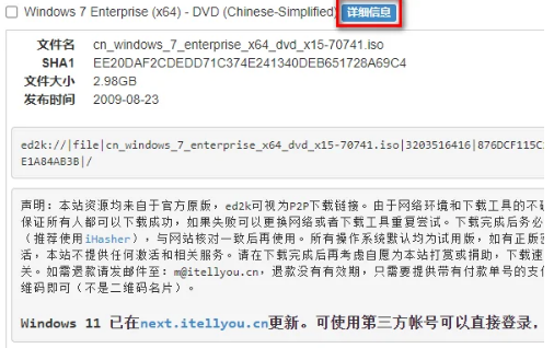 4.在右侧选择自己想要的Windows7版本,点击“详细信息”。