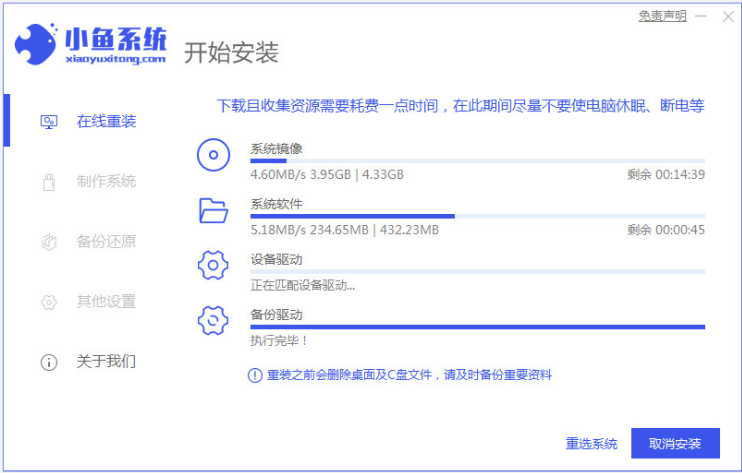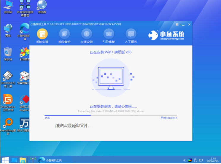 6、请大家耐心等待小鱼装机软件自动安装win7系统。