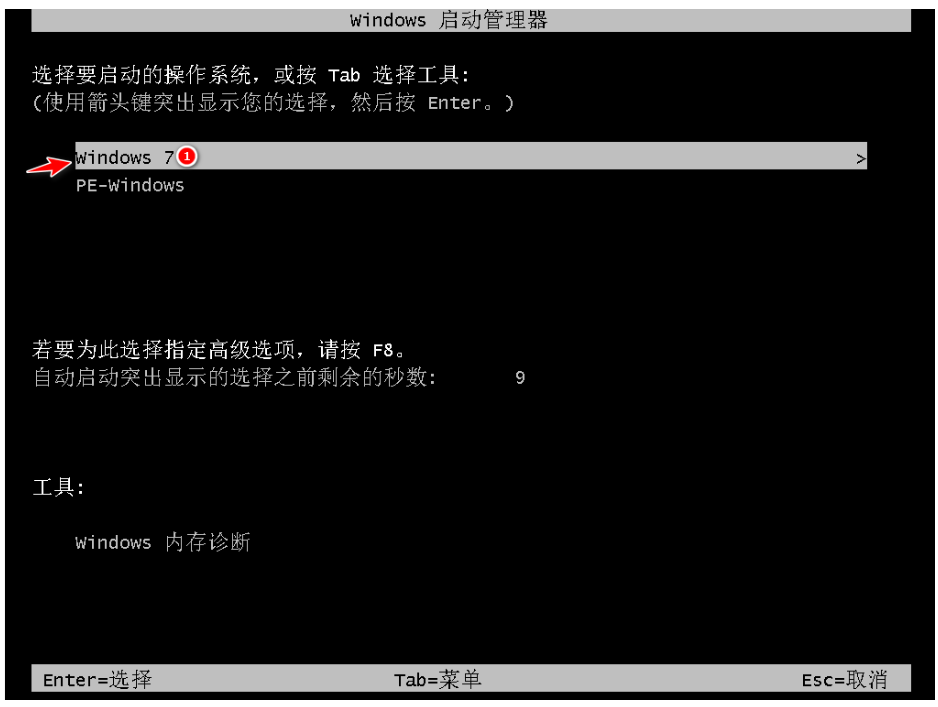 9.重启电脑后进入到启动项时,这时选择第一个选项进入。