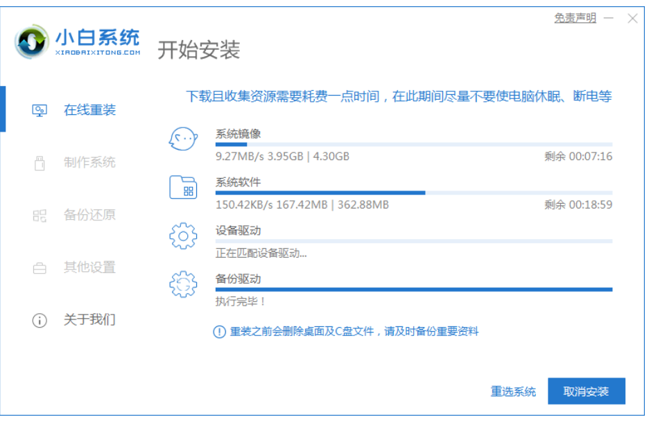 3.开始下载系统镜像文件及驱动设备,耐心等待安装完成就可以了。