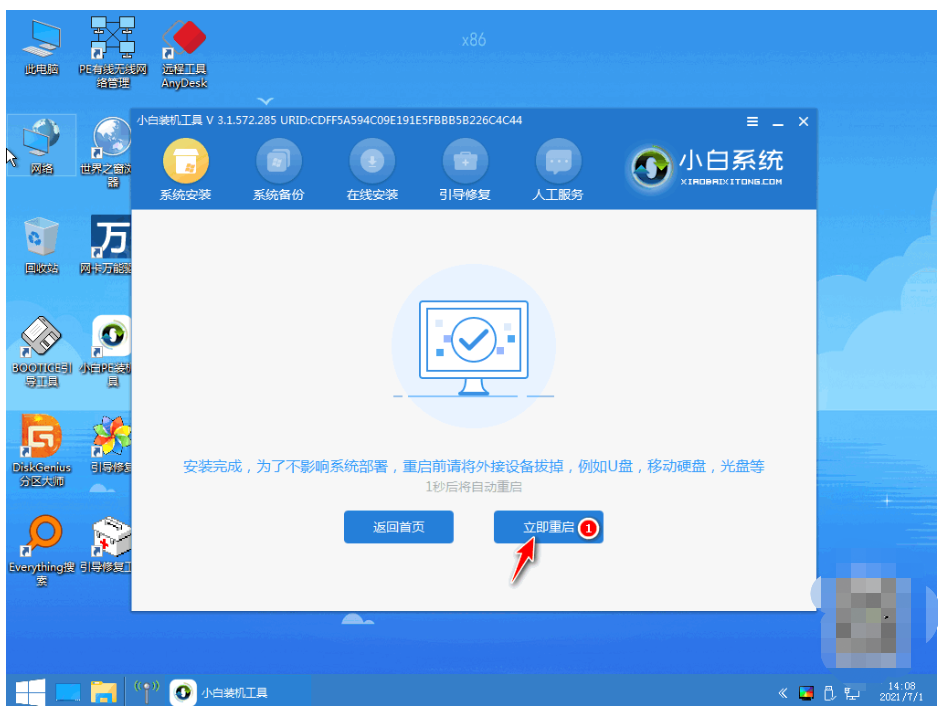 8.安装完成之后,再次重启电脑。