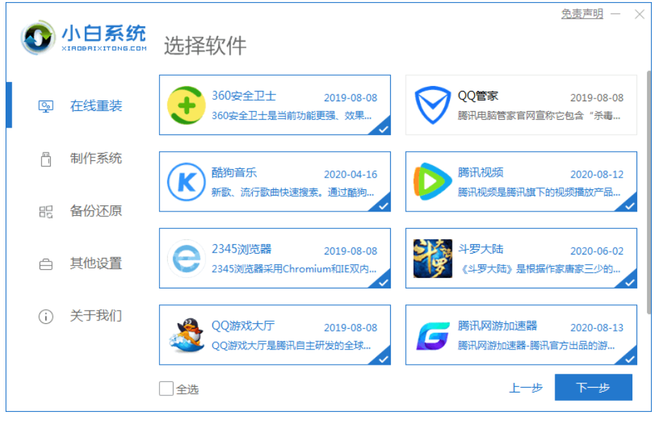 2.进入到下一步选择需要安装的系统软件,点击下一步。