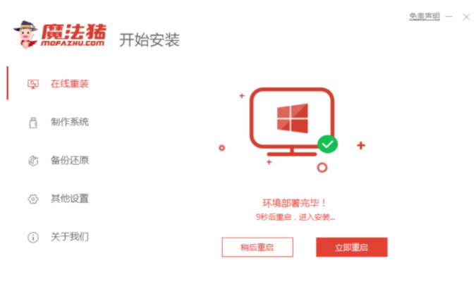 3、装机工具此时就会对下载后的系统进行部署安装,环境部署完毕之后,点击立即重启电脑。
