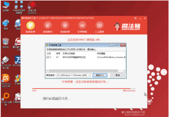 5、电脑进入魔法猪 PE 系统之后,装机软件将会开始自动帮助我们安装系统啦,大家耐心等候安装完成就可以啦。