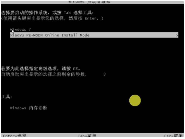 5、选择第二项,按回车键进入到xiaoyu-pe系统。