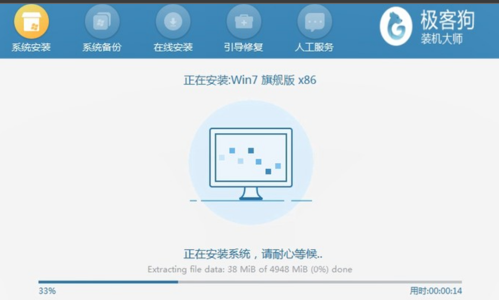 6、随后重装工具将自动打开并安装win7,继续耐心等待。