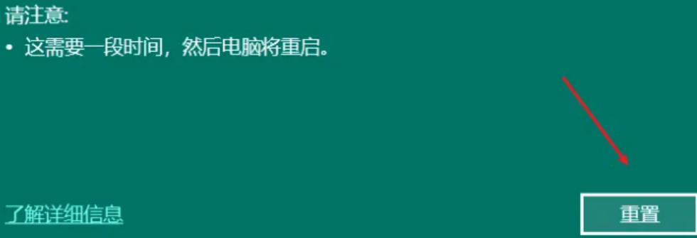 6、此时我们点击重置按钮,即可重新安装电脑系统。