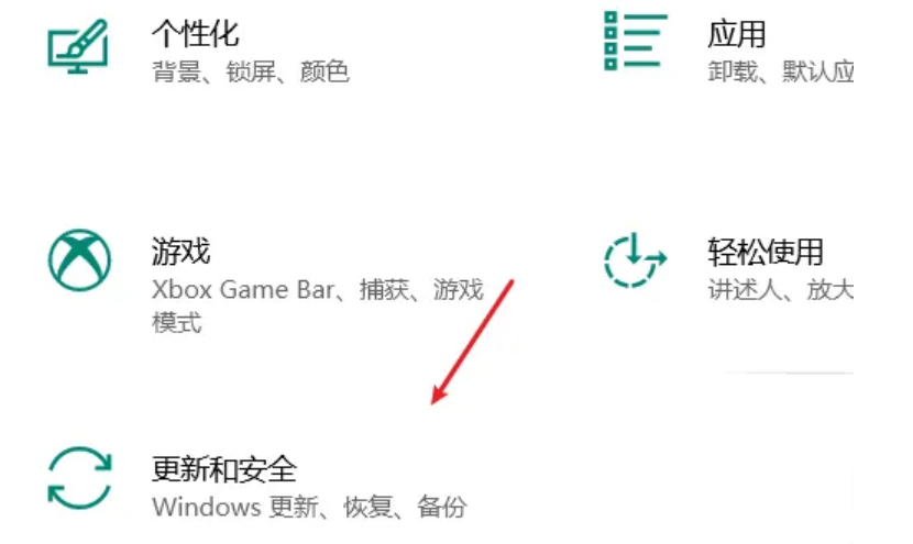 2、然后点击更新与安全。