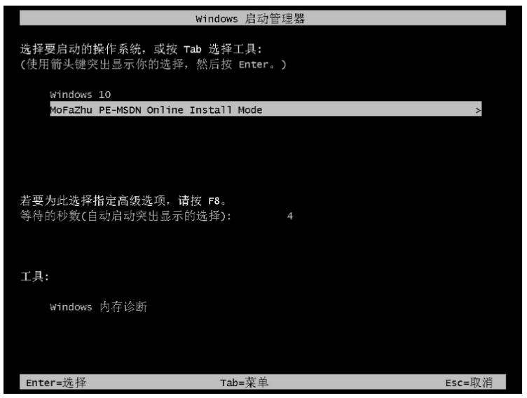 6、电脑进入到windows启动管理器界面,选择带有光标的项按回车键进入pe系统。