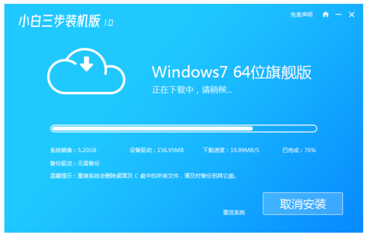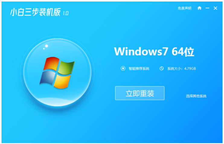 方法二:利用小白三步装机版一键重装win7纯净系统